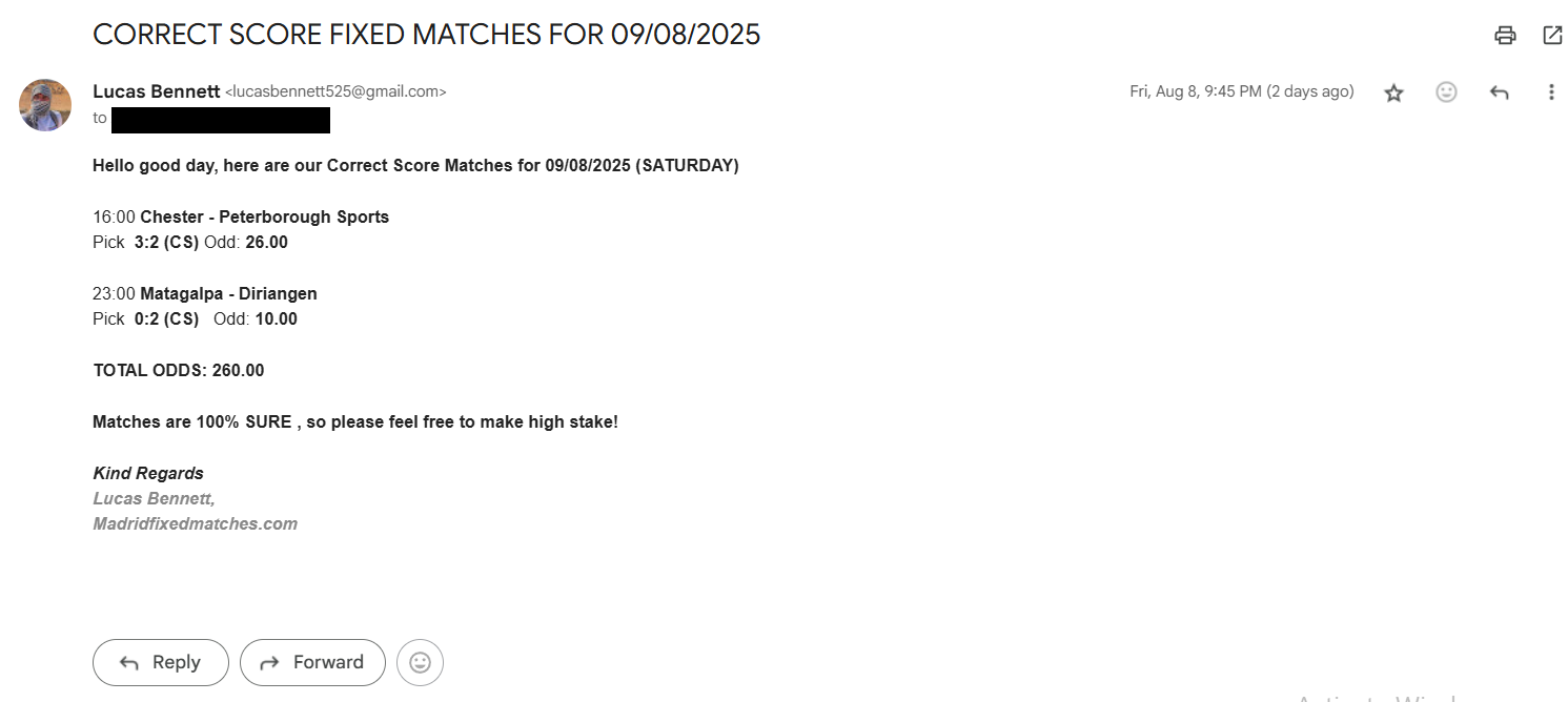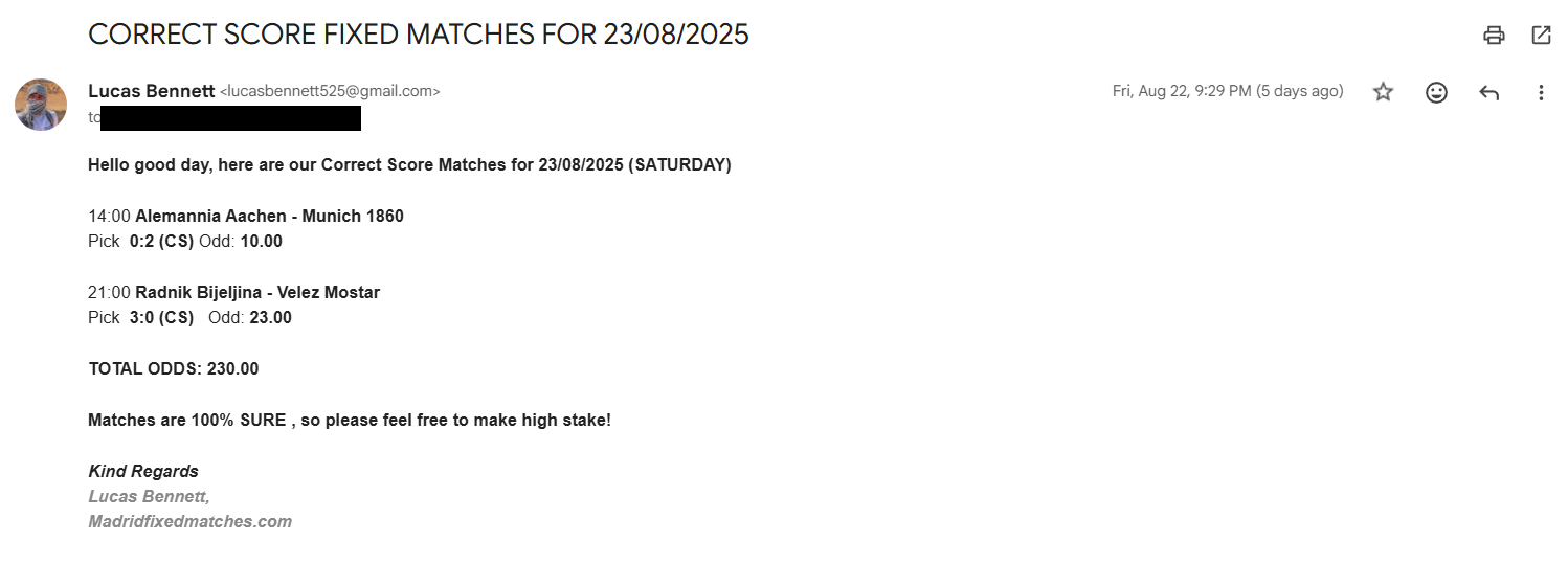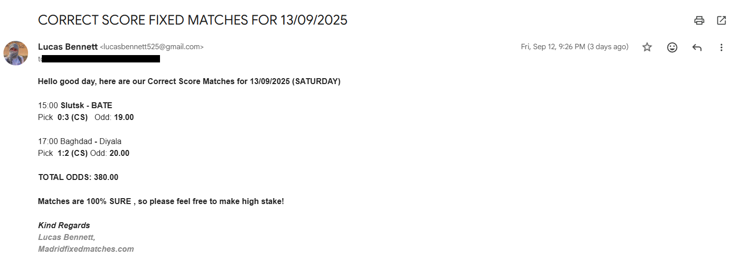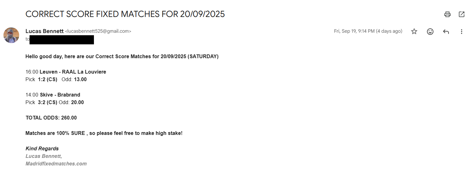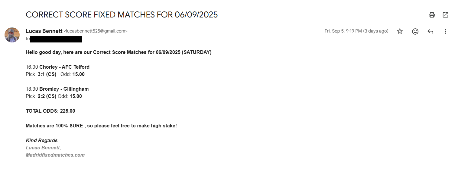 Correct Score Ticket 09/08/2025