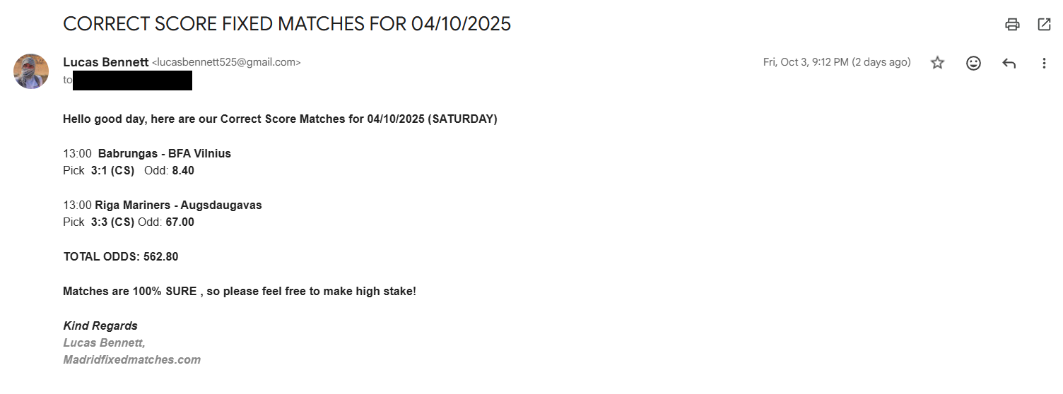 Correct Score Ticket 10/05/2025