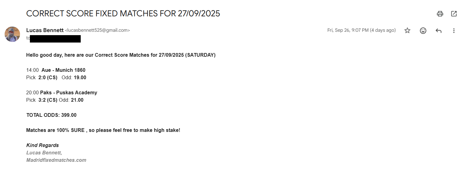 SATISFIED CUSTOMER FROM OUR LAST CORRECT SCORE GAMES: