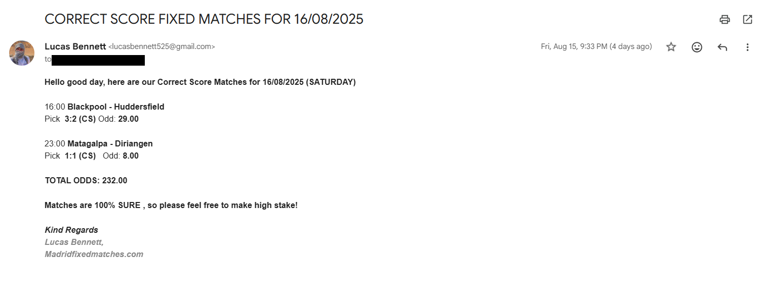 Correct Score Ticket 08/03/2025