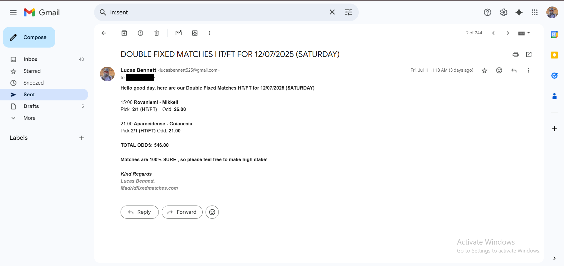 SINGLE HT/FT FIXED MATCH 08/06/2024